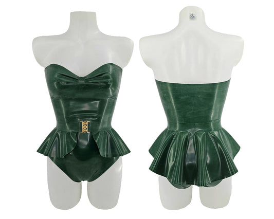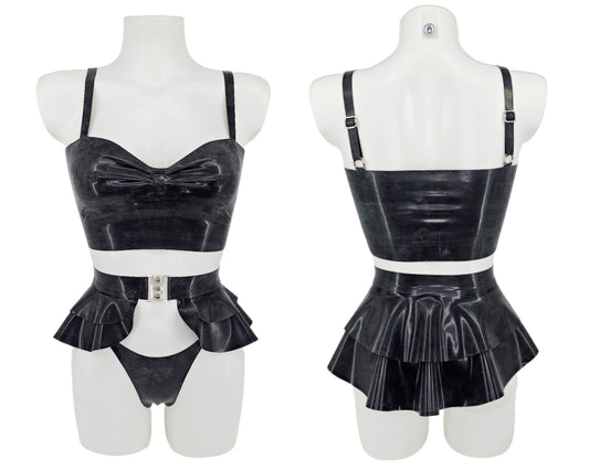 Latex bandeau top, peplum belt and thong set (straps optional)