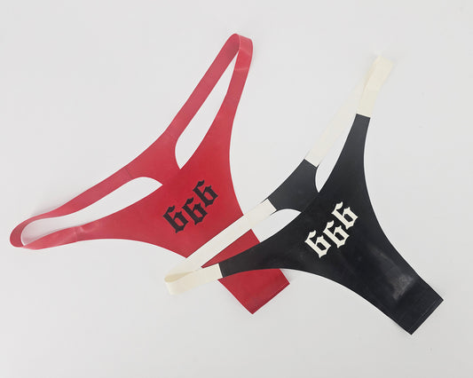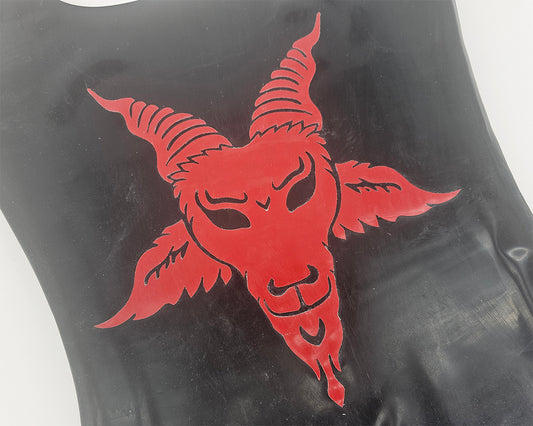 Latex Baphomet thong bodysuit with adjustable straps (silver, gold or rainbow hardware)