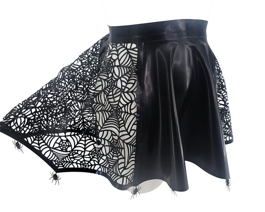 Lasercut latex spiderweb panelled full circle skater skirt