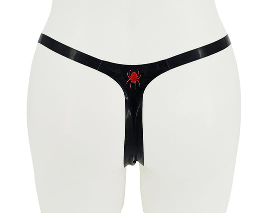 Lasercut latex spiderweb thong with spider
