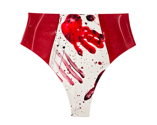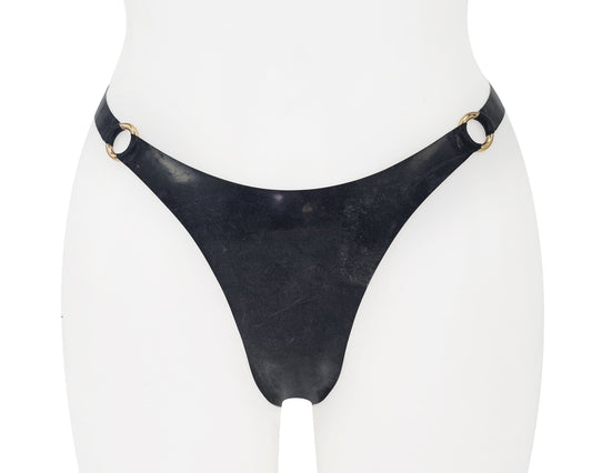 Glitter/pattern latex thong with rings (silver, gold or rainbow rings)