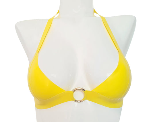 Latex top and thong bikini set with rings (silver, gold or rainbow rings)