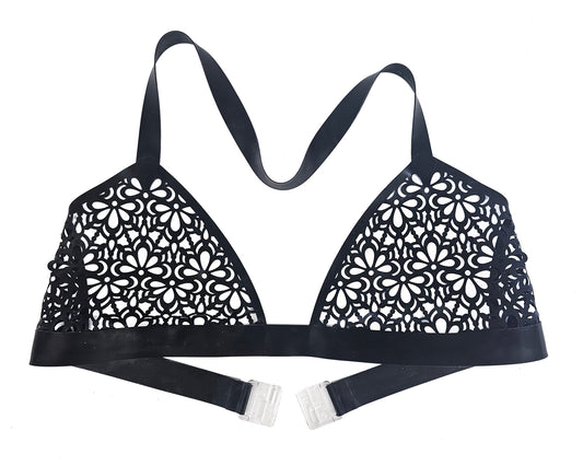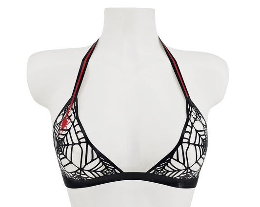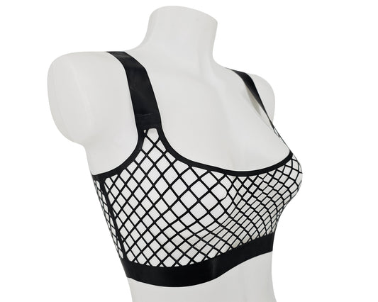 Lasercut latex fishnet halter bikini top with ring (silver, gold or rainbow ring)