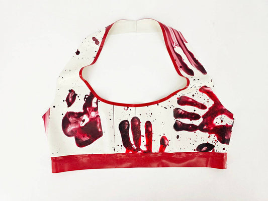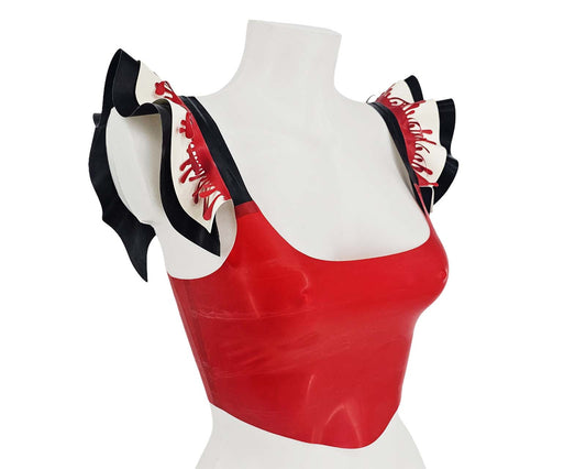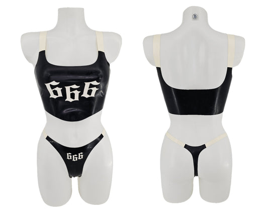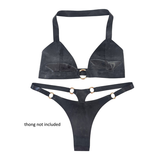 Latex halter bikini top with ring (silver, gold or rainbow ring)