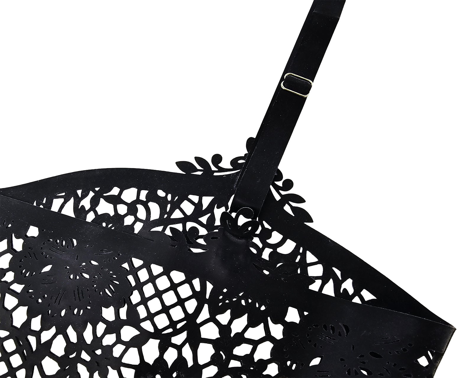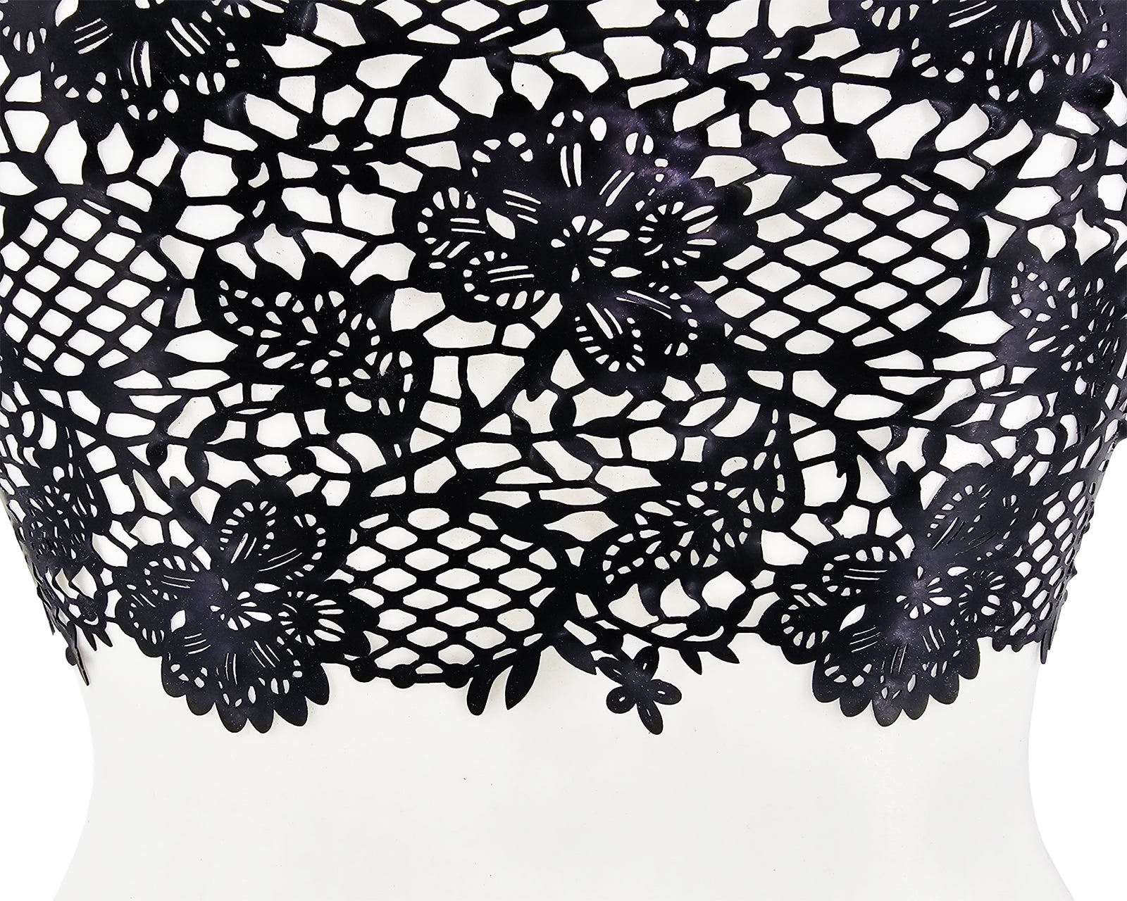 Haut court en dentelle et latex découpé au laser. Coupe ample en bas.