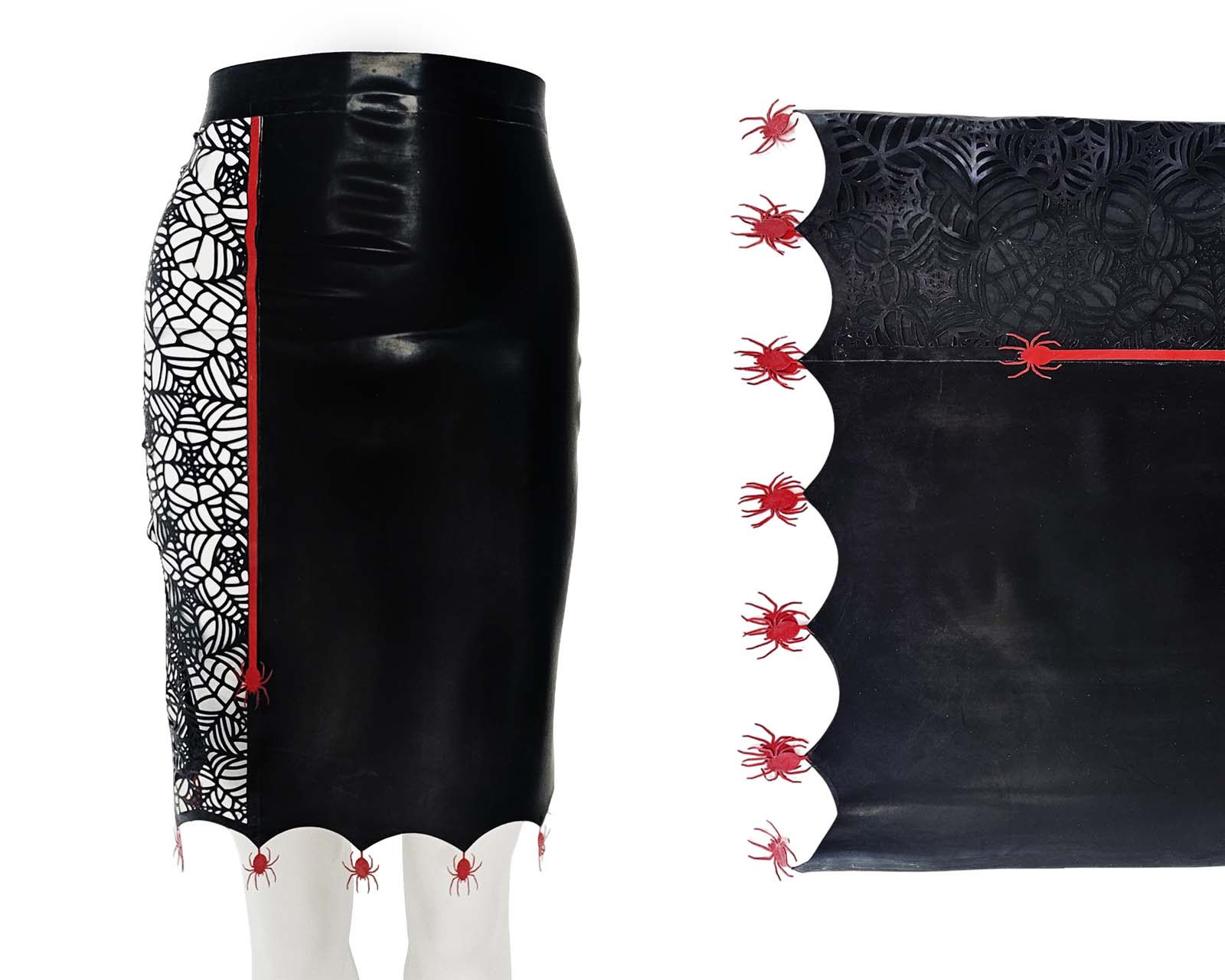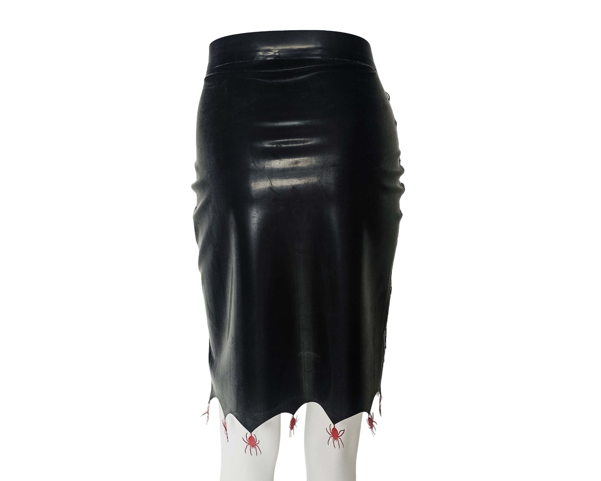 La jupe est enfilable et fabriquée en latex de 0,4 mm, présentée ici en noir