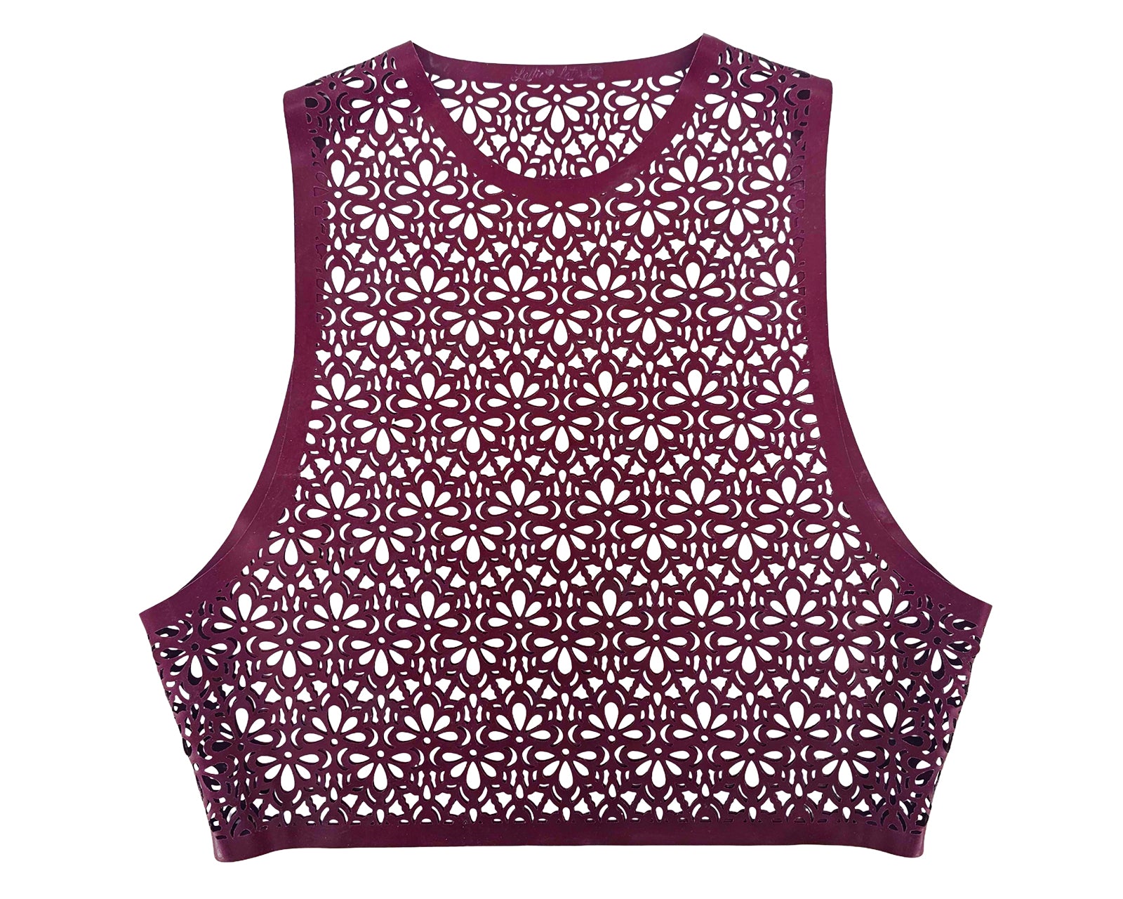 Haut court en latex découpé au laser avec motif nid d'abeille